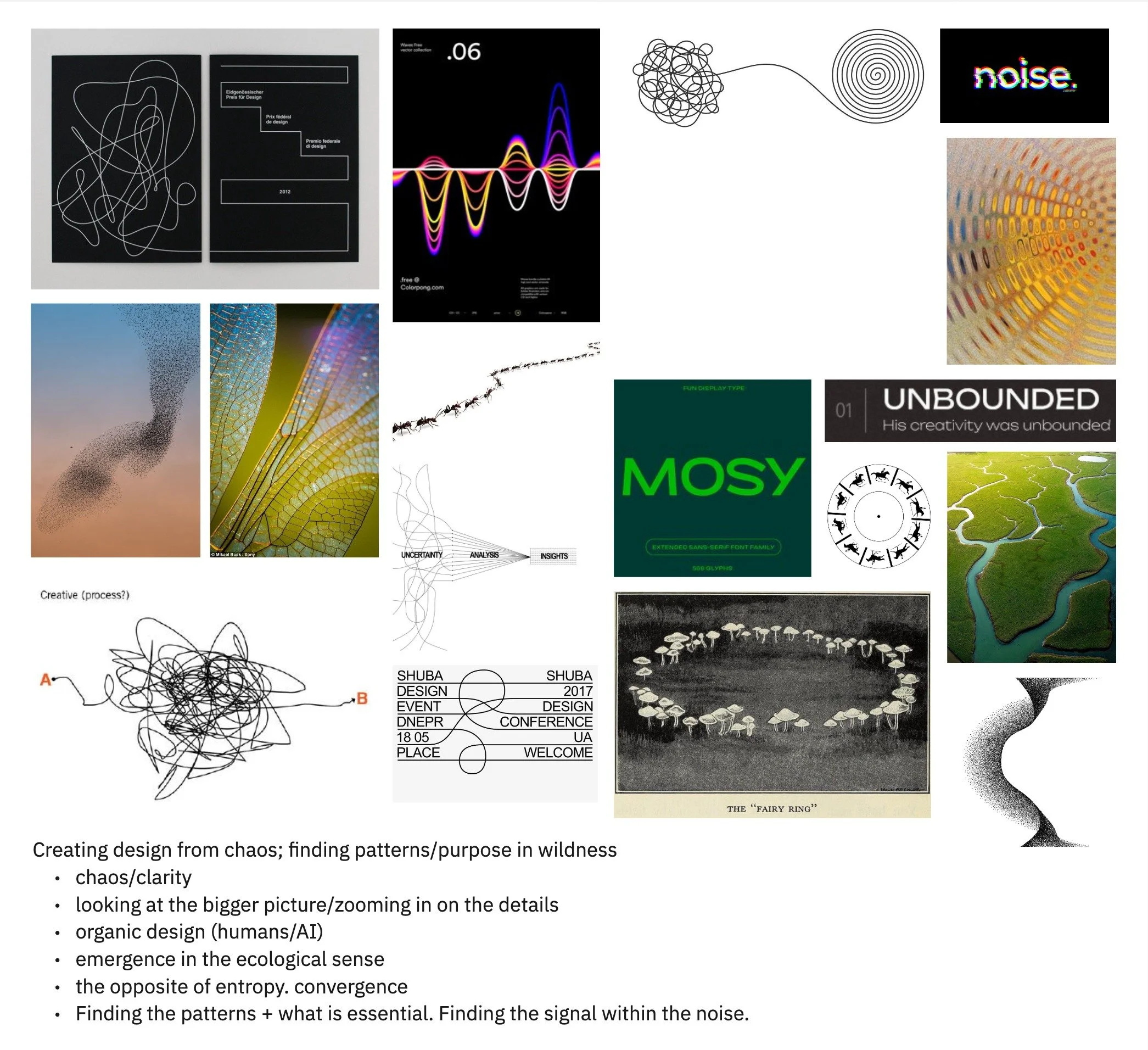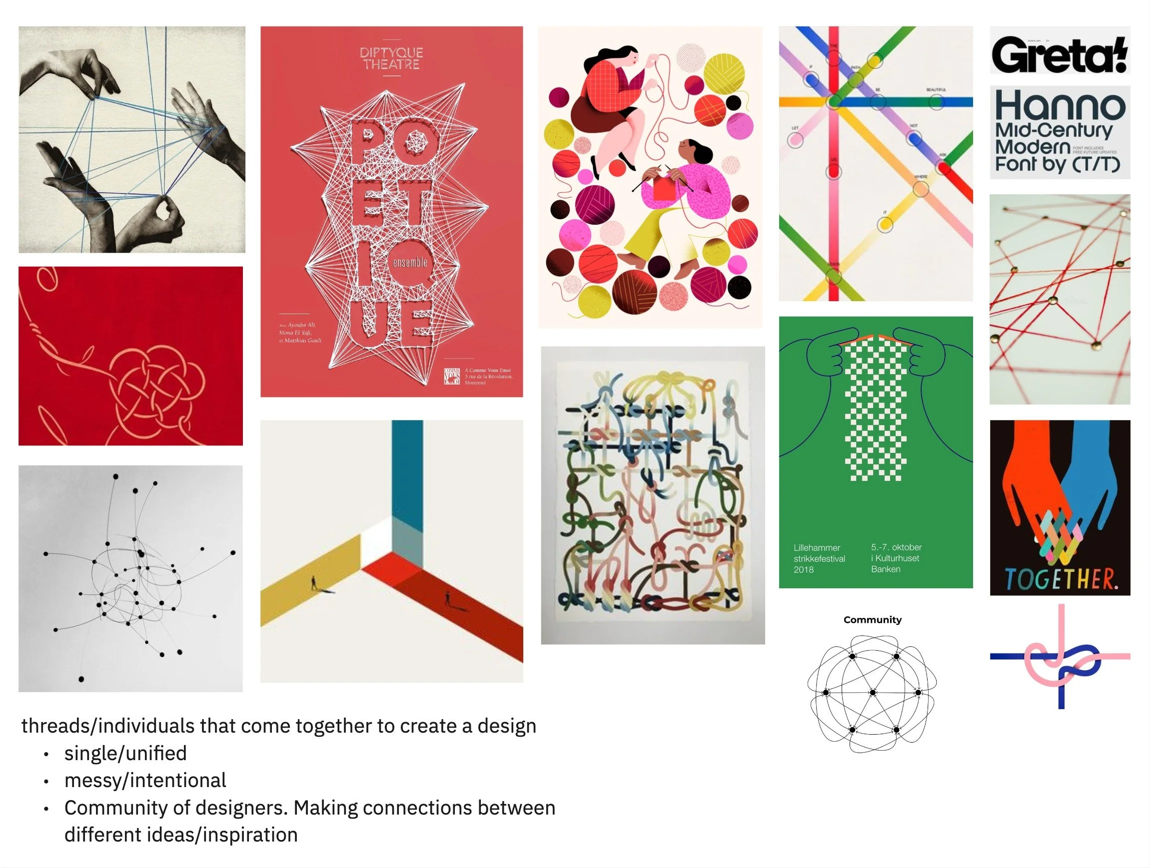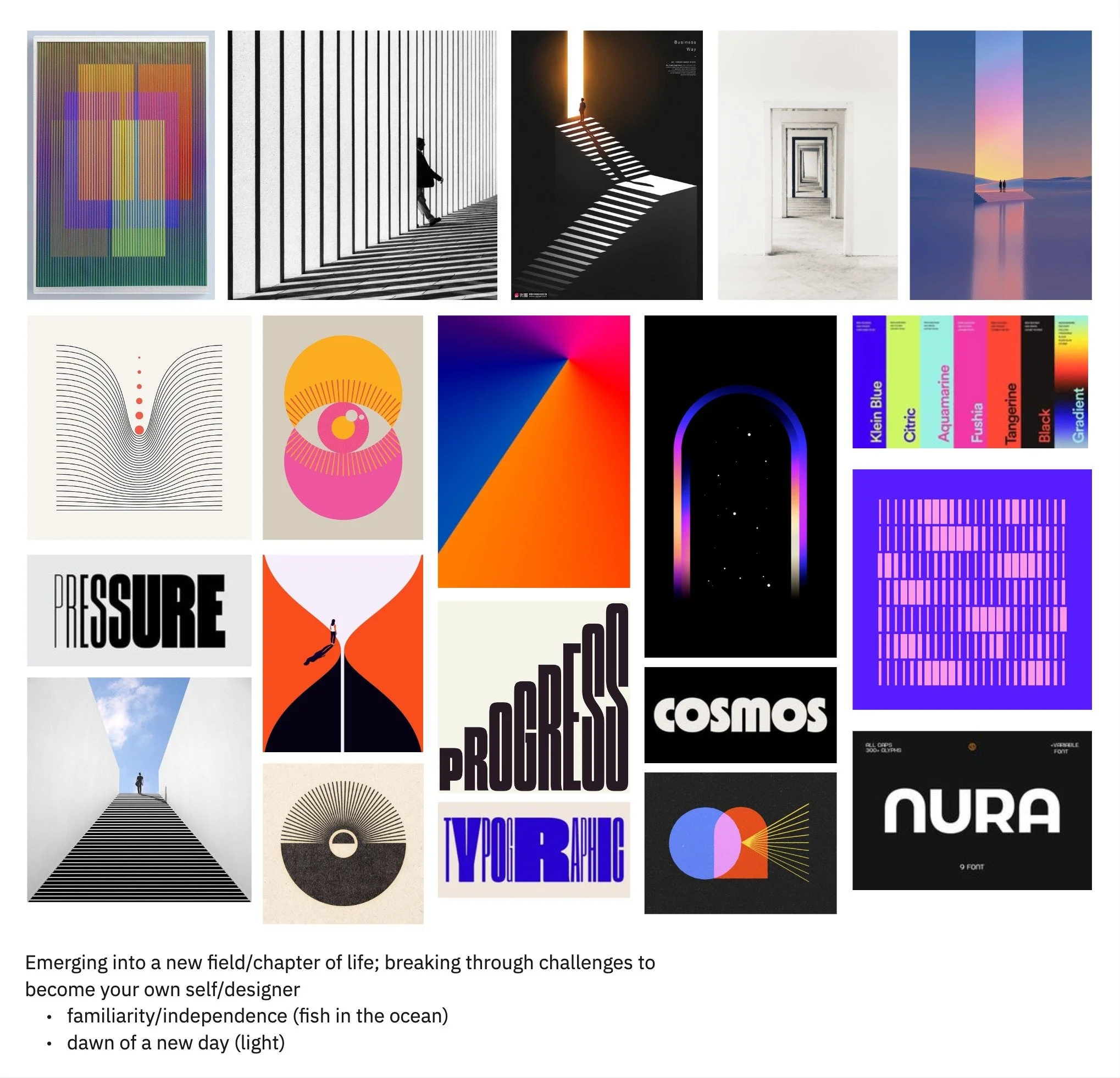 After brainstorming on our own, we looked for overlap in our ideas and grouped them into three distinct themes, each with a corresponding mood board.