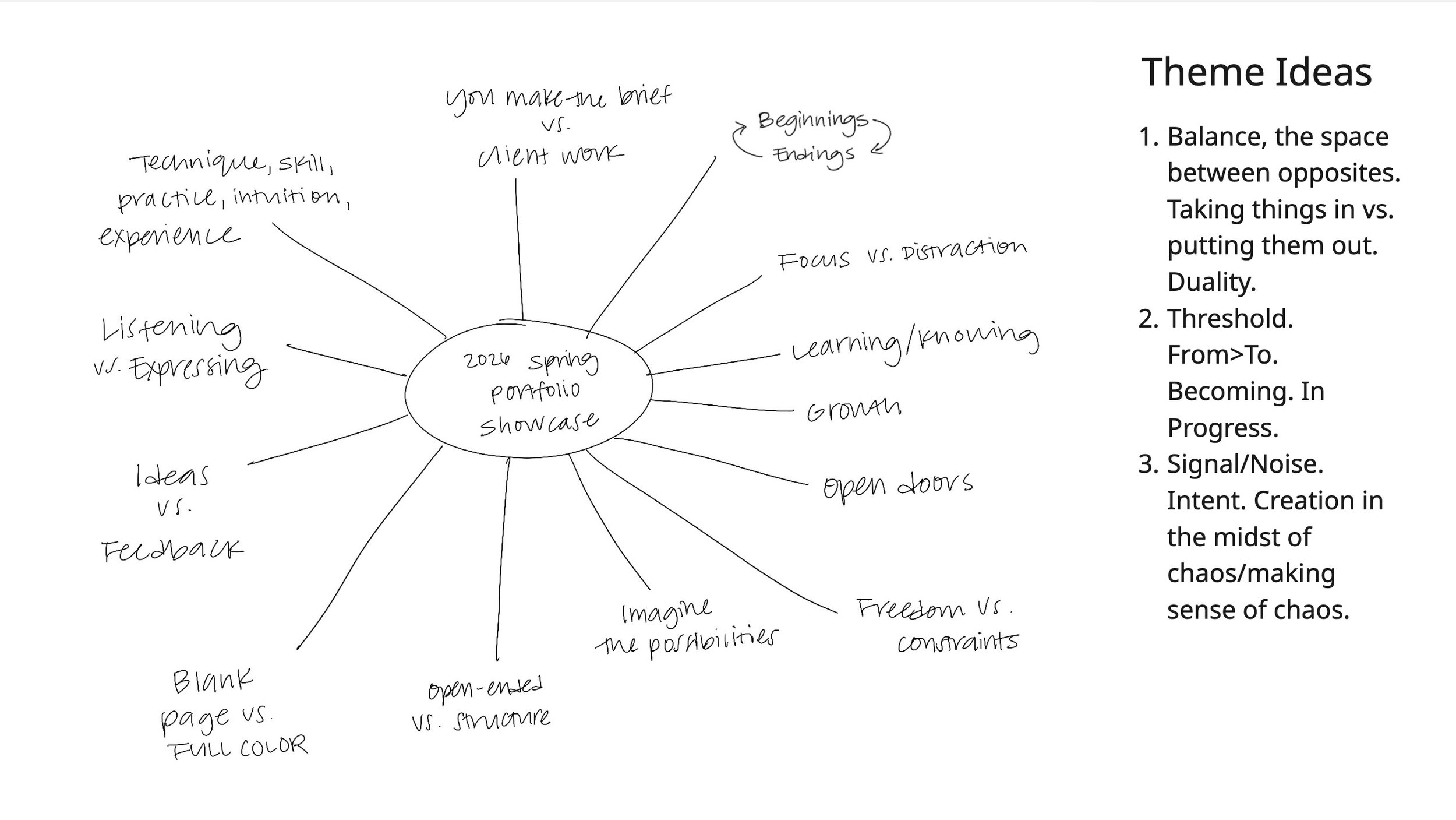 We began our discovery process by looking at branding from previous portfolio shows, using it as a point of reference while intentionally pushing toward something new and distinct.