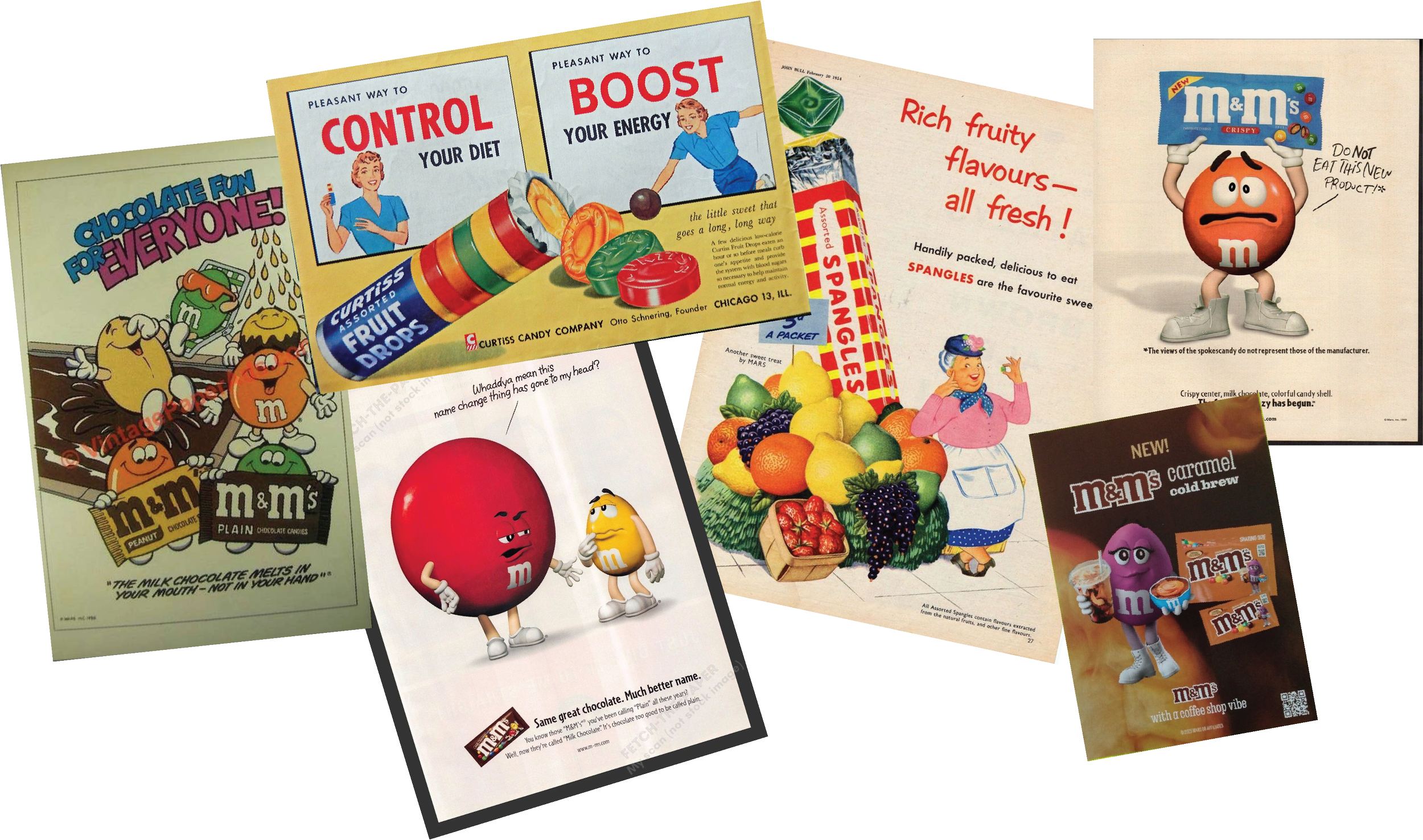 For the magazine print ads, I continued the retro-inspired direction from the bottle label. I drew inspiration from vintage magazine ads and classic M&M’s campaigns, where products are personified and given a sense of character and story.