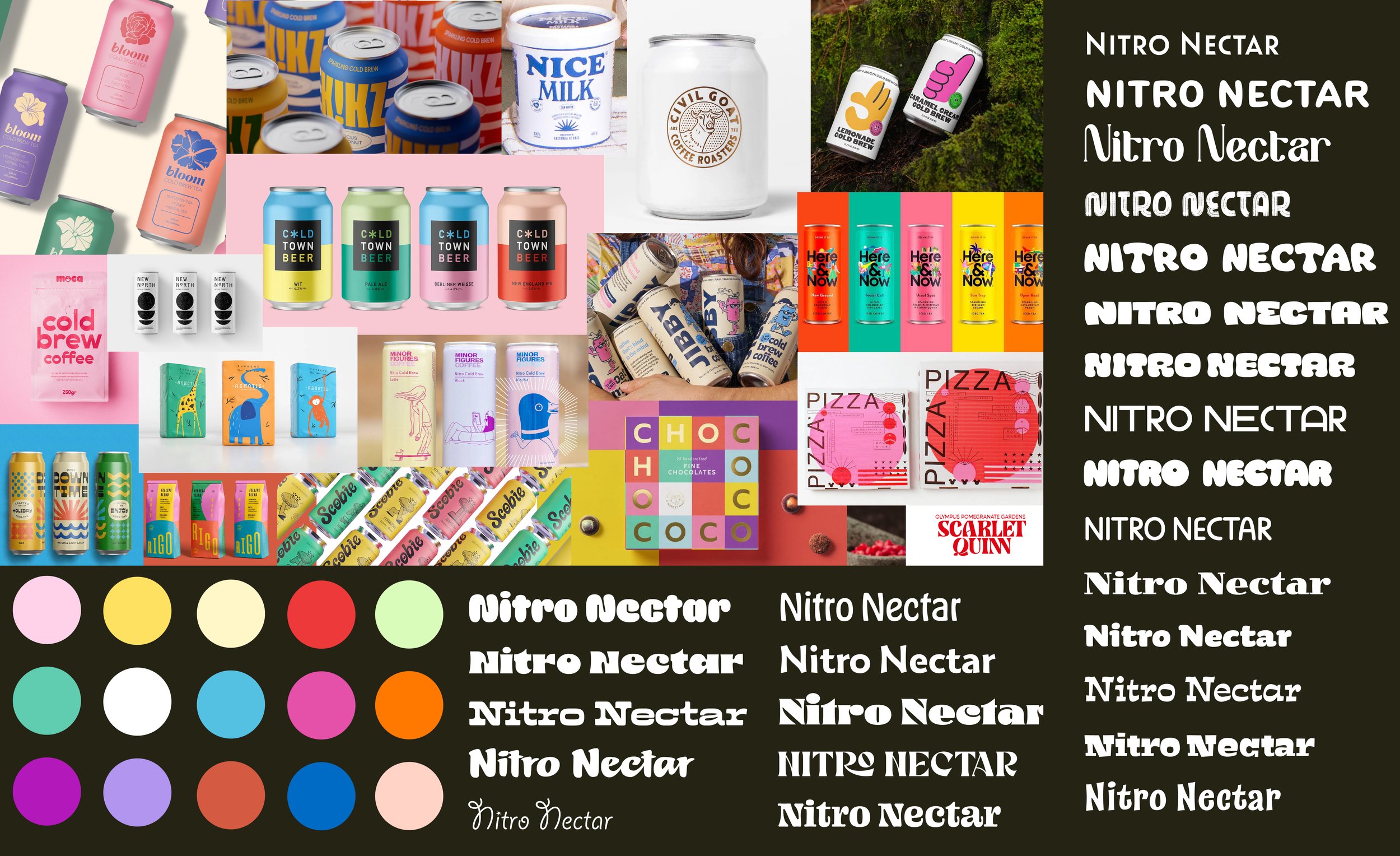 Through research into the cold brew market and competitors like High Brew, Chameleon Cold Brew, La Colombe, and Pop & Bottle, I identified an opportunity to stand out through flavor. While many brands focus on simplicity, Nitro Nectar centers on bold, unexpected combinations to appeal to consumers looking for a more unique coffee experience.